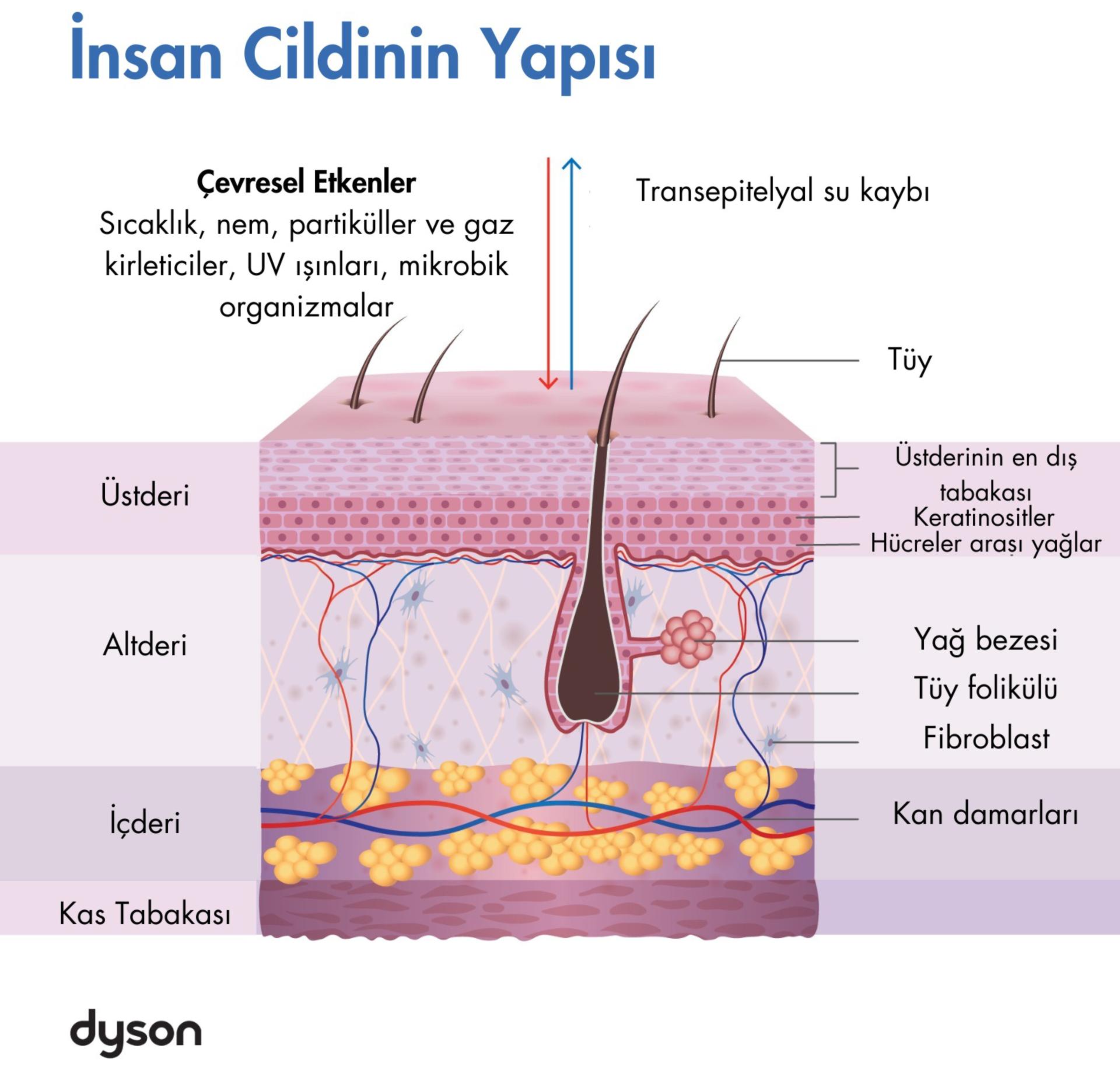 Bilim insanları, Dyson nemlendirme özellikli hava temizleme teknolojisinin belirli bir zaman diliminde cilt üzerindeki etkisini anlamak için, Dyson Purifier Humidify+Cool (yüzde 55 bağıl neme ayarlanmış) ile nemlendirilmiş havaya maruz kalan cilt ile sadece kuru havaya (yüzde 25 bağıl nemde) maruz kalan cildi karşılaştıran bilimsel bir araştırma10 gerçekleştirdi. Araştırmaya katılan bireylerin kollarının ön kısmı üç saat boyunca farklı koşullara maruz bırakılmış, ardından kuru havaya maruz bırakılan kolları nemlendirilmiş ortama sokuldu.11