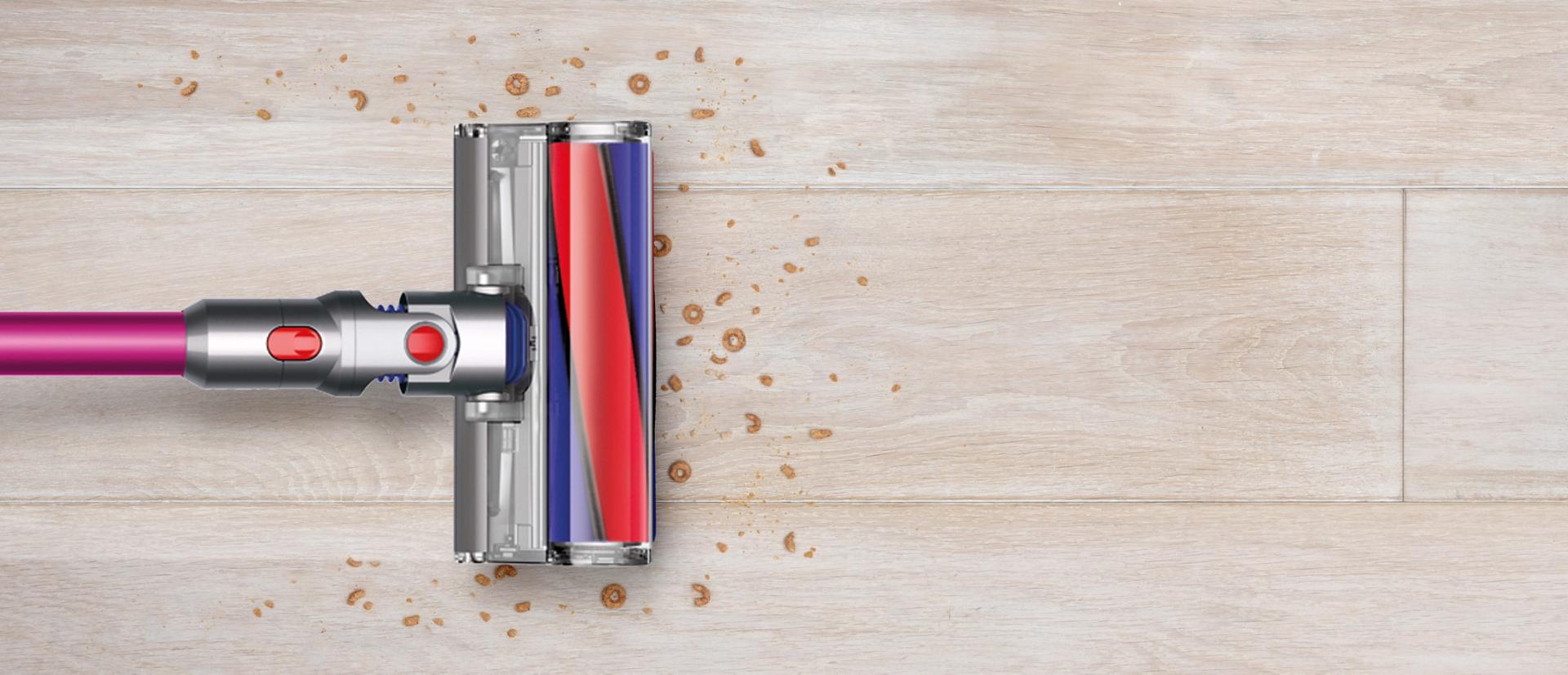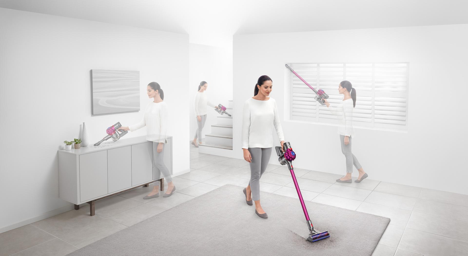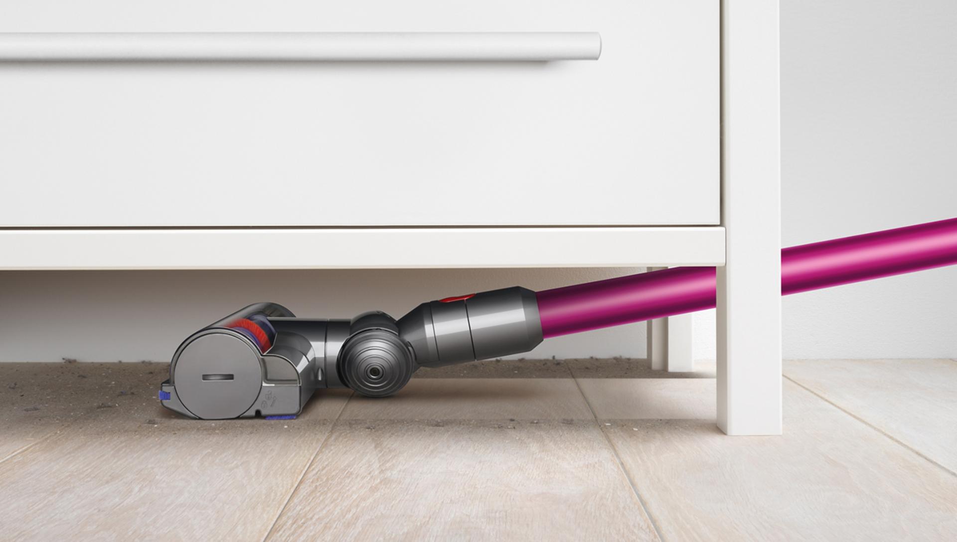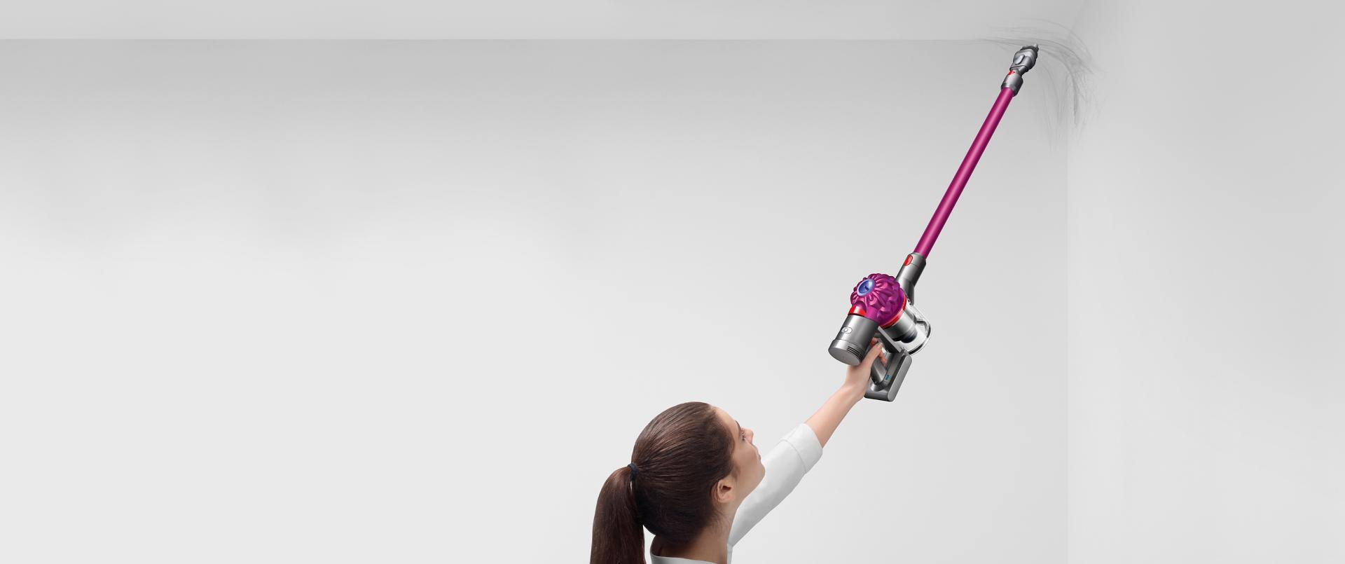 Dyson V7™ dikey süpürgenin motoru, kullanım kolunun üzerindedir ve yüksek yerleri temizlerken kolayca kaldırmanız için Arşimet'in kaldıraç prensibinden yararlanır.