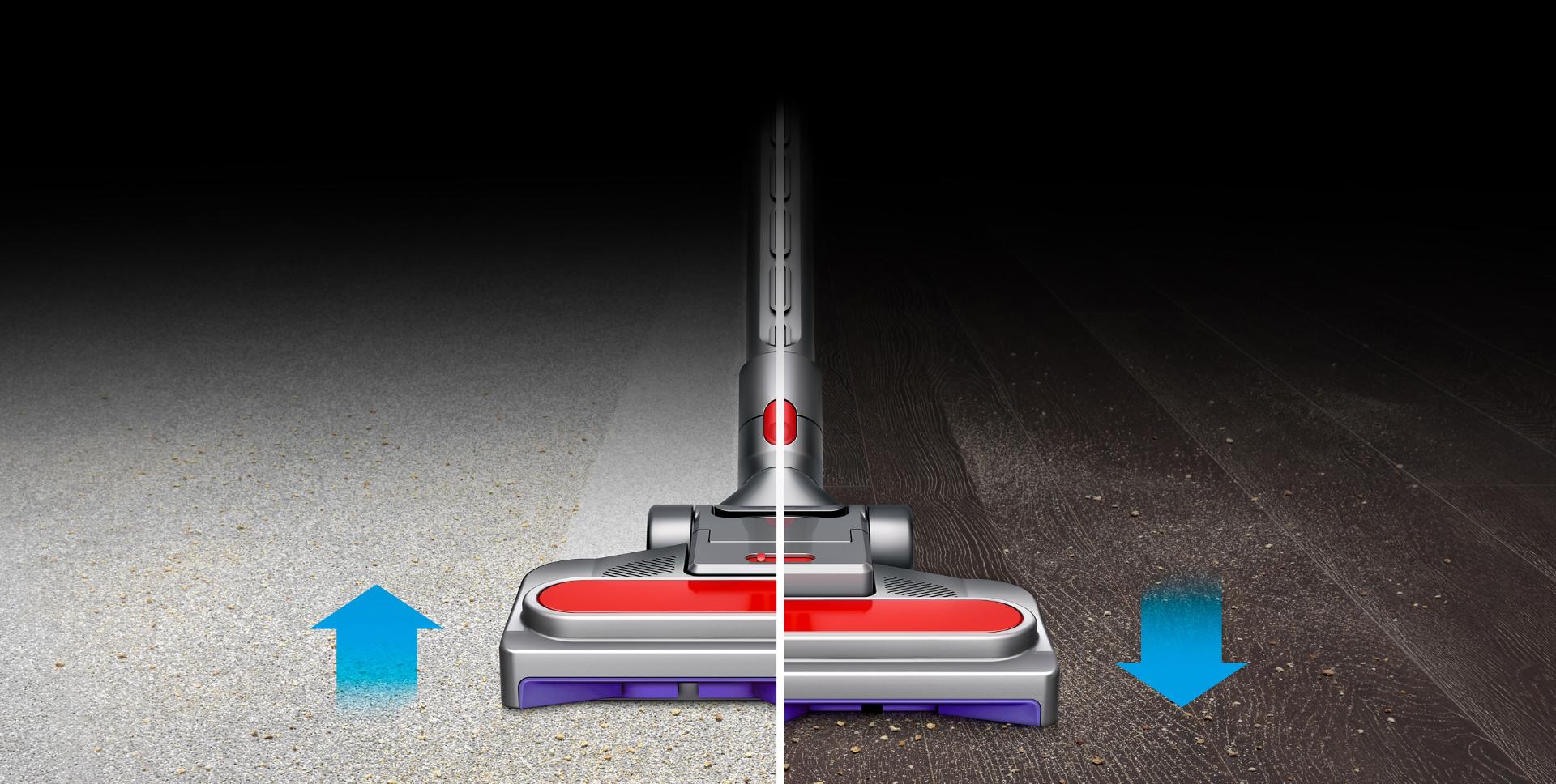 Farklı yüzeylere göre, yükseklik ve alçaklık ayarını otomatik olarak kendi yapabilen temizleme başlığı ile tüm zemin tiplerinde güçlü bir emiş uygulanır.